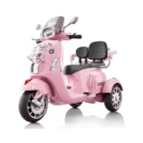 The 12V Rechargeable Kids Double Seat Vespa lets two children ride together on a stylish electric scooter. Measuring about 76 cm x 76 cm x 115 cm, it’s designed for safe, low-speed cruising on flat surfaces, making it a show-stopper for parties and weekend rides.