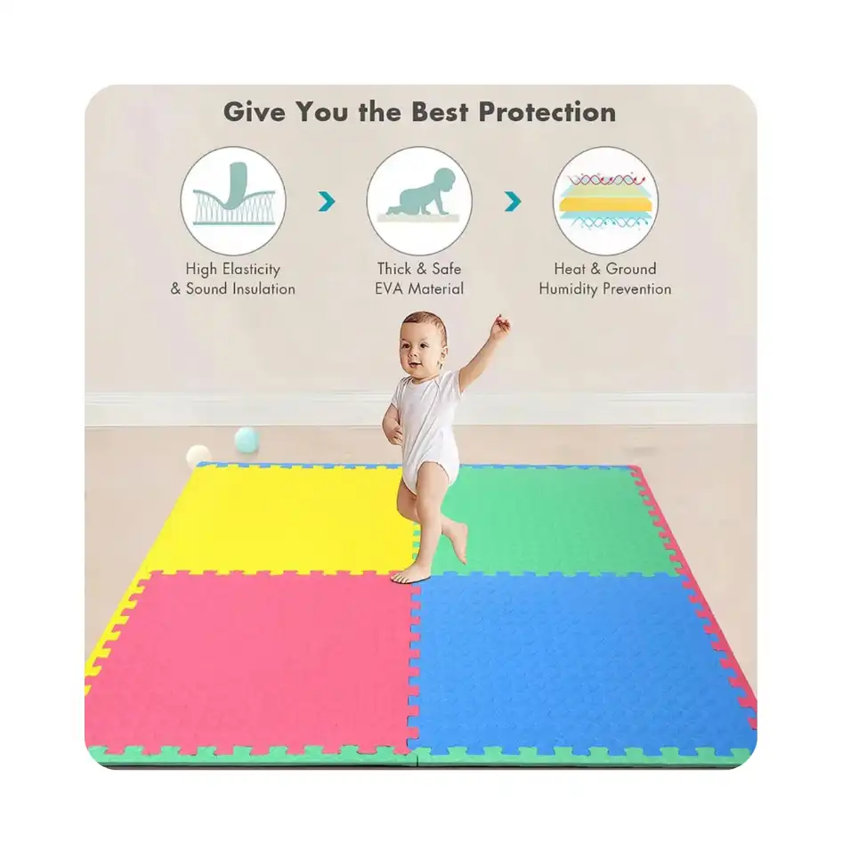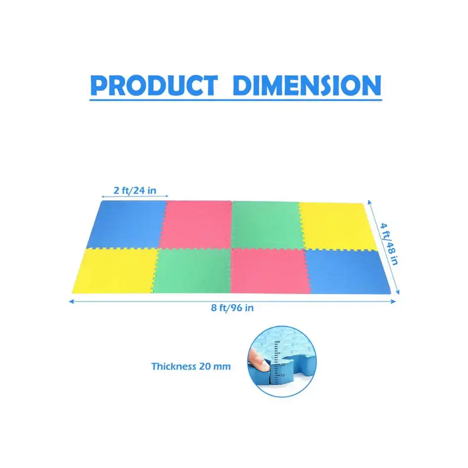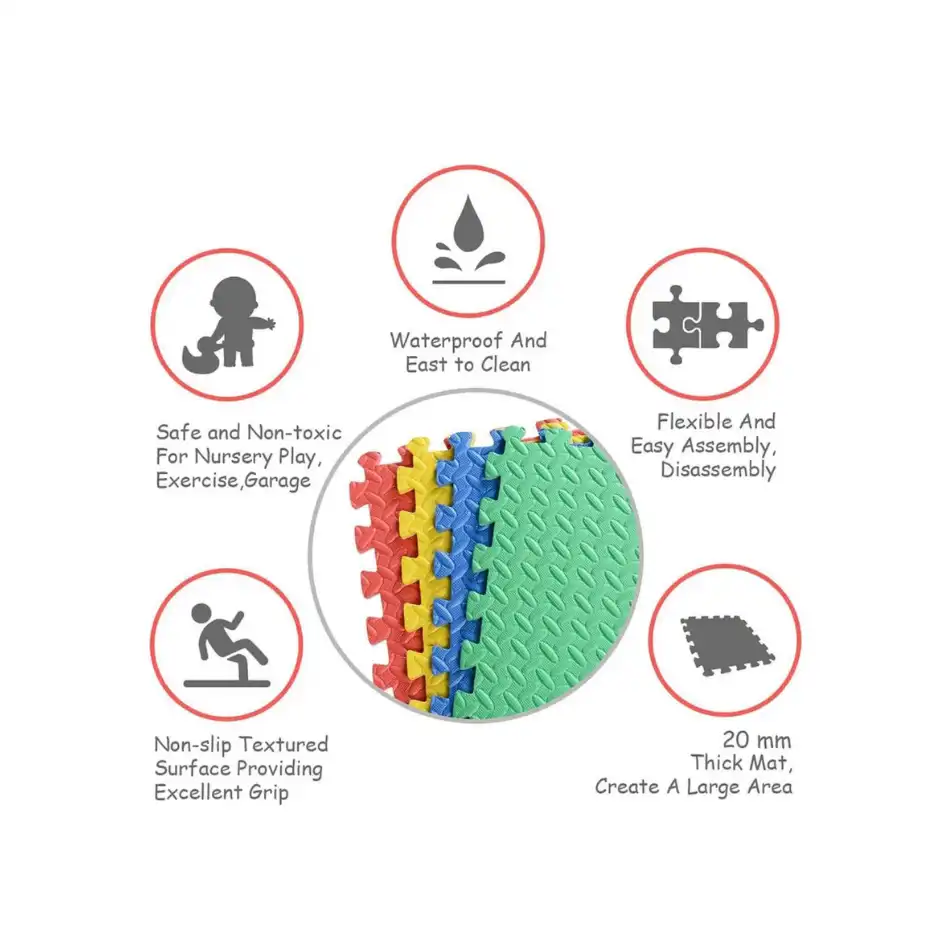 This set of 4 Interlocking EVA Foam Mats covers 16 sq ft and features 20 mm thick cushioning to protect little knees and heads during active play. The colourful interlocking tiles create a soft, anti‑slip surface that works beautifully under slides, climbers, ride‑ons, and activity areas.