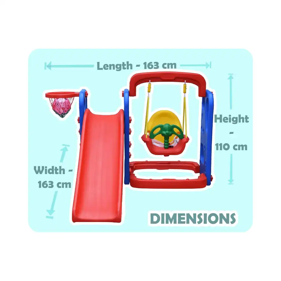 • Multiple Ways to Play: Children can slide, swing, and practise basketball, giving them variety and keeping boredom away without needing separate bulky toys.