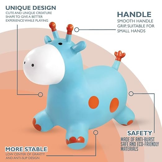 Bring home the ultimate “bouncy” companion with the Jam & Honey Giraffe Hopper! Specially designed by Amazon Brand for kids aged 2+, this colorful, inflatable ride-on toy encourages active play, builds core strength, and improves balance for both indoor and outdoor fun.