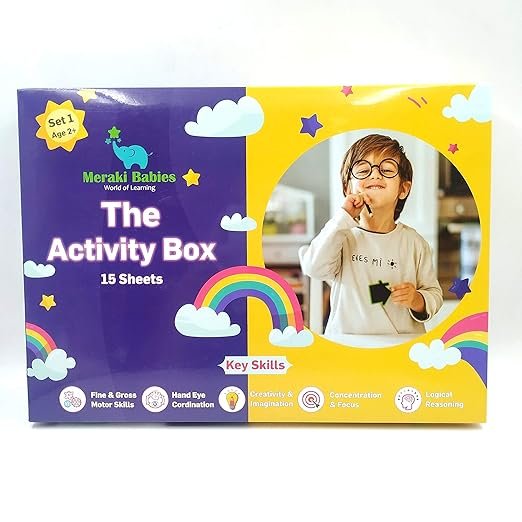 15 activities, 1 box, infinite learning! The Meraki Babies Activity Box is a Montessori-style toolkit for toddlers aged 2+. With 15 durable, colorful sheets covering key early milestones, it’s the perfect way to build big skills in little learners.