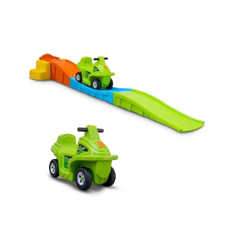 • Push, Ride & Glide: Kids can push the car up the ramp, hop on, and glide down—repeating the sequence builds strength, coordination, and patience.