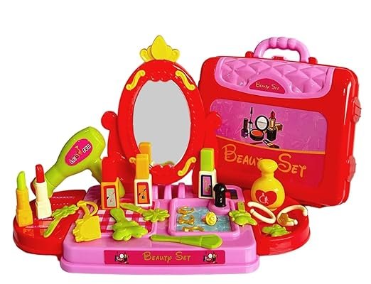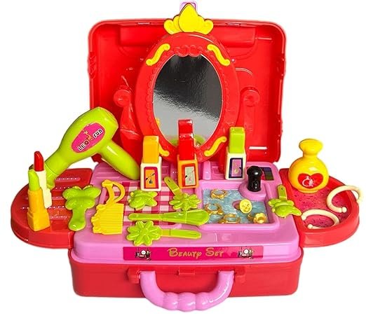 Spark your little one’s creativity with the RAGHUNANDAN 3-in-1 Beauty Set! This versatile toy transforms from a stylish portable suitcase into a standing vanity, complete with a variety of pretend makeup accessories. Perfect for girls who love role-play, it’s designed to be travel-friendly for “glamour on the go.”