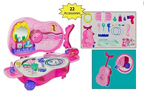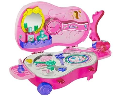Glamour on the go! This 22-piece Violin-Shaped Makeup Set features a rolling trolley case that opens into a miniature vanity. It’s a mess-free, portable beauty kit that encourages creative role-play and confidence for children aged 3 and up.